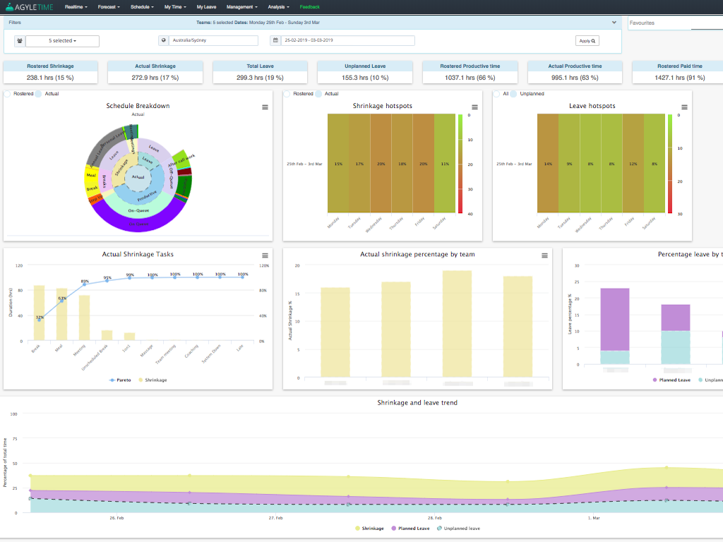 As a Workforce Management tool, Agyle Time allows you to improve your business service levels by matching staffing to workload through the use of accurate forecasts, real time adherence tracking and monitoring as well as reporting dashboards.