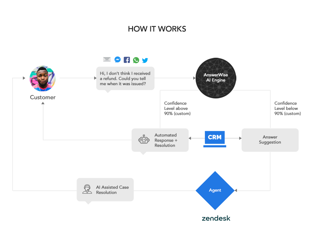 With the AnswerWise app for Zendesk, you can: Automatically resolve repetitive support queries and save your agents time. Provide faster issue resolutions for your customers 24*7. Improve customer experience and reduce overall cost of customer service.