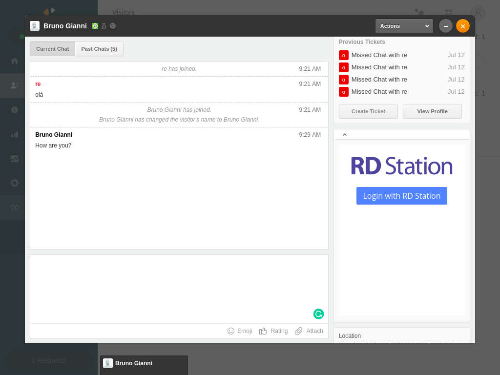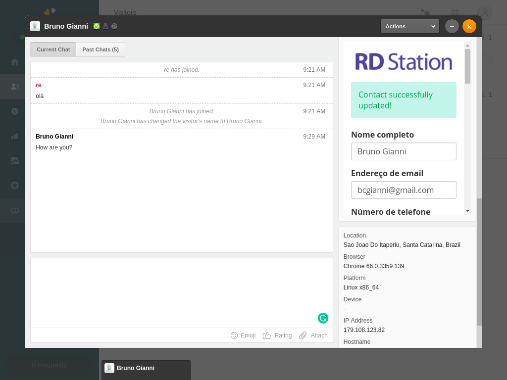 Now, whenever you access a chat conversation, you will be able to see the Contact information from RD Station directly on your chat window.