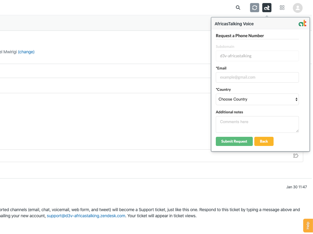 Pick a phone number and enrich your call-center experience through Africa's Talking Voice. Your agents can easily receive, make and manage calls all across 3 African countries (Kenya, Uganda, Nigeria)