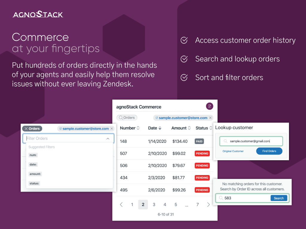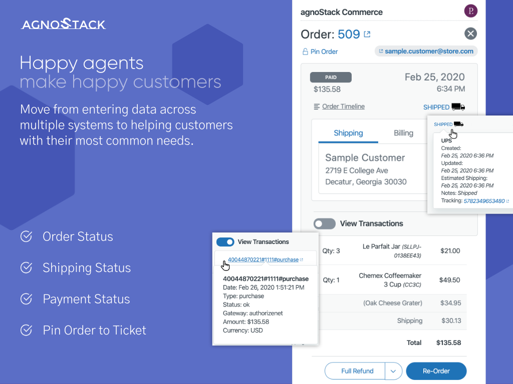 The agnoStack™ Omni-Channel Support plugin makes it possible to view and manage Order data from your eCommerce Store directly within Zendesk.