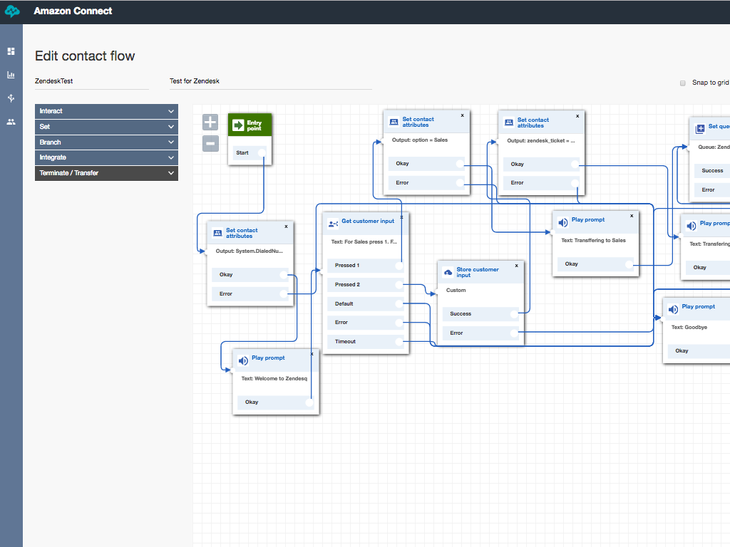 The current Amazon Connect for Zendesk app provides direct access to the Amazon Connect platform right inside your Zendesk Support account. The app generates tickets when new calls are answered or outbound calls are placed, and updates tickets with additional call details at the end of the call.