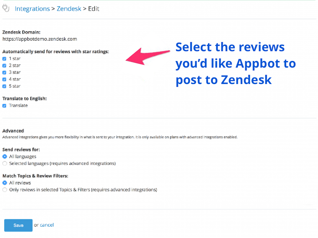 - Post some or all of your app reviews into your Zendesk