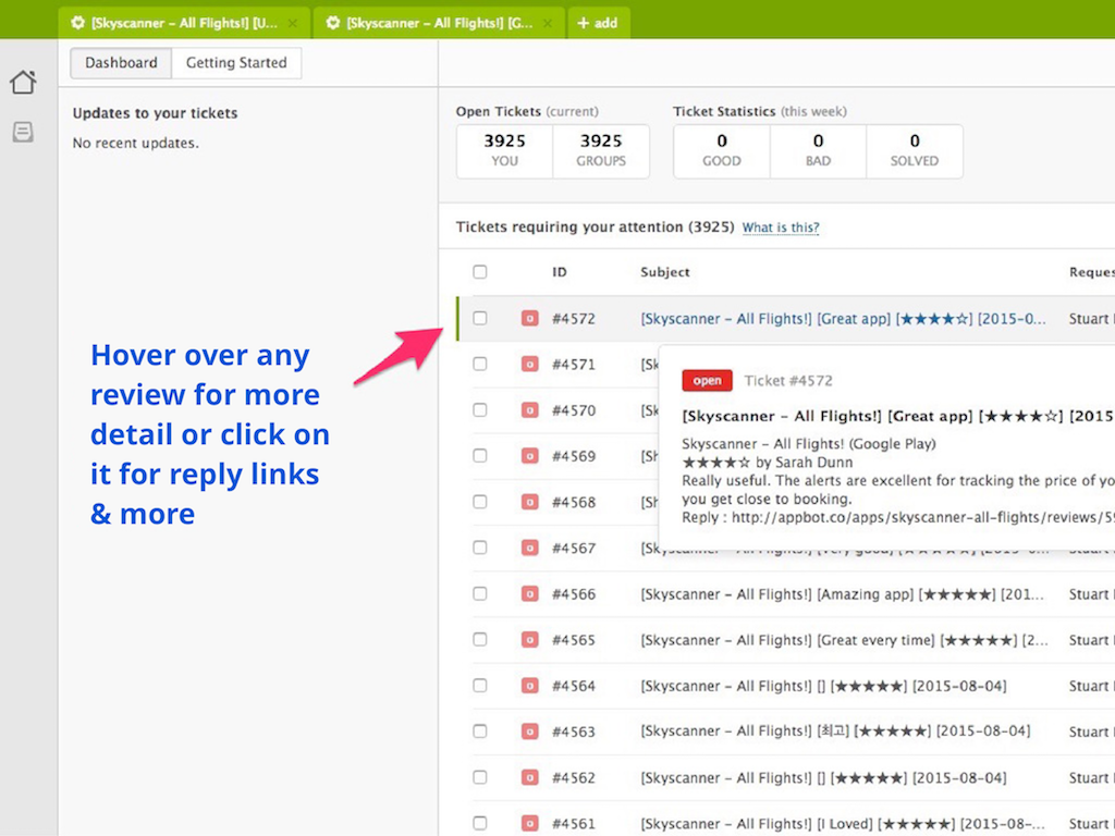 Outside Zendesk, your Appbot account also gives you: