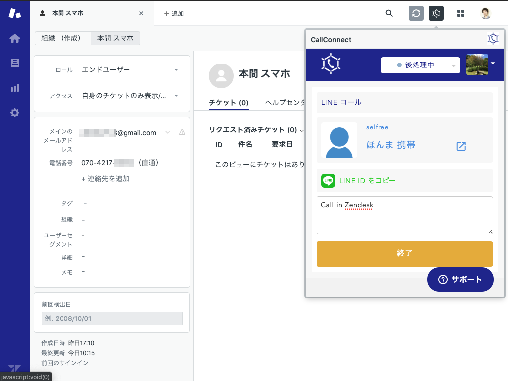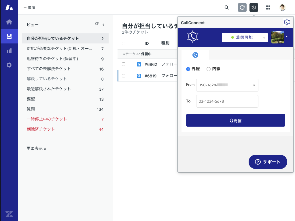 This Zendesk app can be used in Japan. All of call features in CallConnect (Browser Call System) can be used in Zendesk completely. You can use CallConnect defaut features such like phone calling, pause, queueing, save memo or tags. When you start calling, you can watch the Zendesk user that matches with the call number. Reading with the past tickets, you can talk with them. Of course, if you connect with Zendesk in CallConnect, the call ticket will be created into Zendesk.