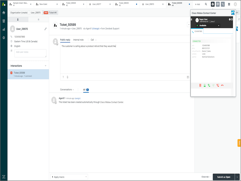 - Agents have contact center functionality embedded within the Zendesk experience. No need to flip between apps. Improves first contact resolution
