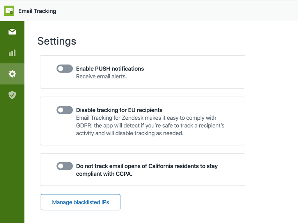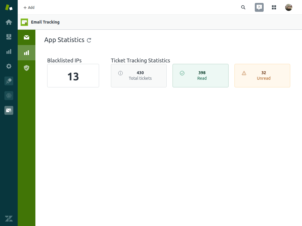 Email Tracking is an application for Zendesk Support that offers out-of-the-box email tracking.