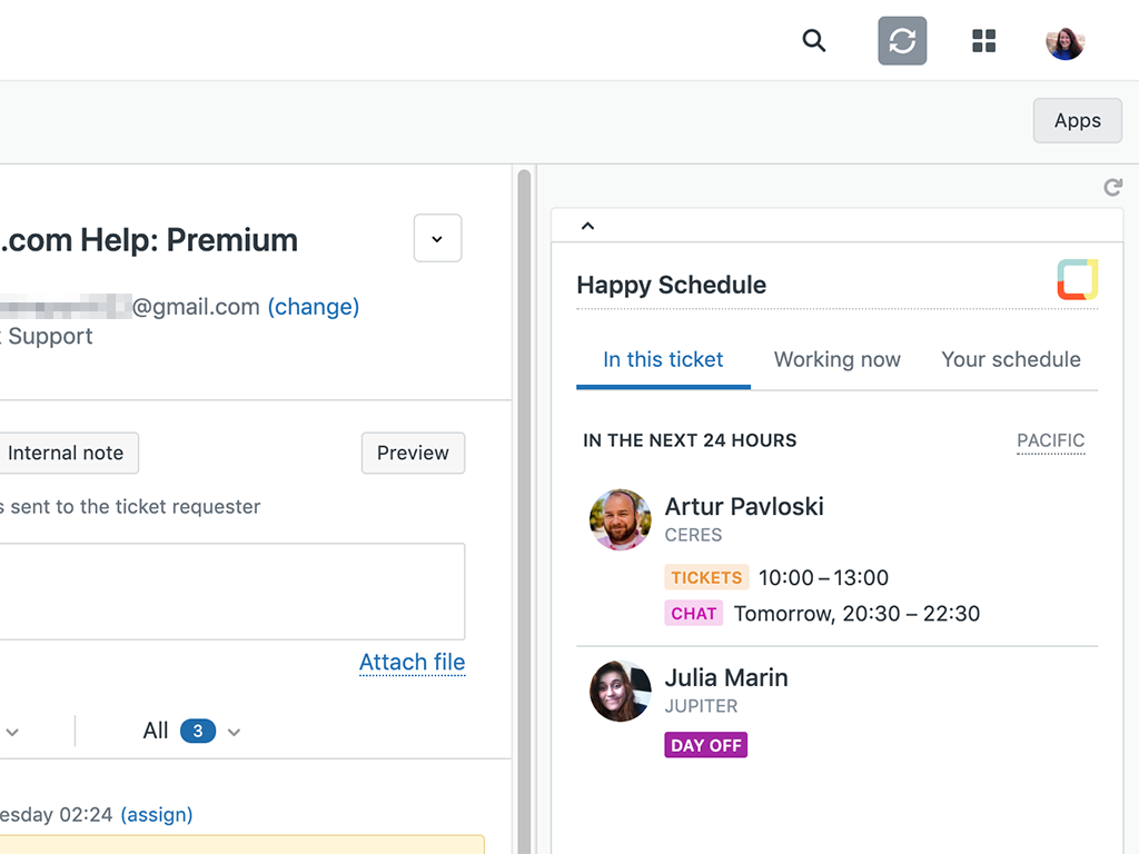 Once you’ve signed up, click the Install button above to see the Happy Schedule app in Zendesk Support.