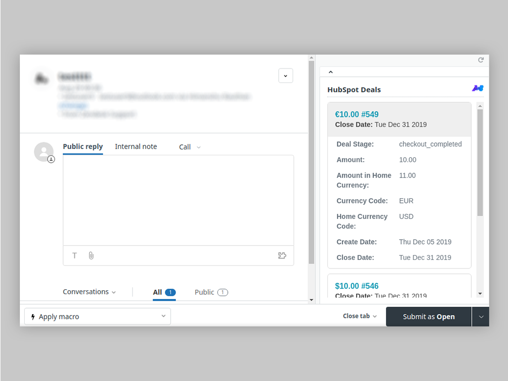 HubSpot Deals by MWB automates your Zendesk dashboard to fetch the latest five deals of the ticket from your HubSpot portal. Admin can view the deal details directly from their Zendesk account without logging in to the HubSpot portal every time.