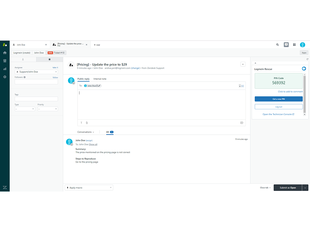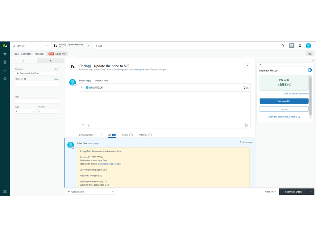 Now you can combine remote support from LogMeIn Rescue and ticketing workflow from Zendesk Support to deliver fast, reliable support for PCs, Macs, and smartphones. Let your support team collaborate with customers in real time to quickly diagnose and resolve issues. To learn more about the integration, see the LogMeIn Rescue - Zendesk Integration Guide.