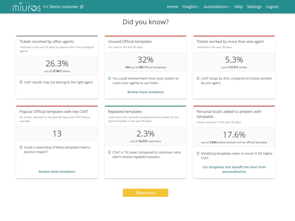 In order to set up Miuros Insights into your Zendesk, simply schedule a call with us.