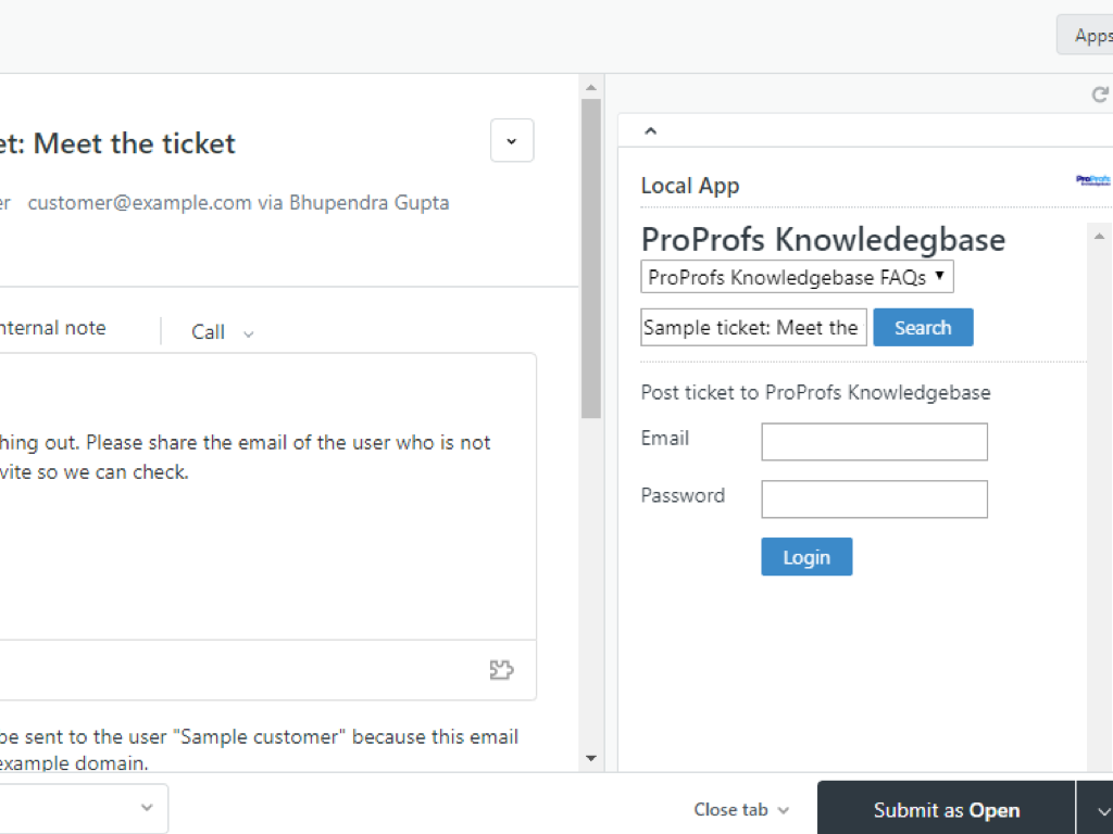 With ProProfs Knowledge Base app, your agents can resolve the tickets on Zendesk easily. They can either search for information instantly and paste the same as a response or provide a direct link to a suitable Knowledge Base article right into the ticket comment. This will reduce the response time of your agent in answering customer questions.