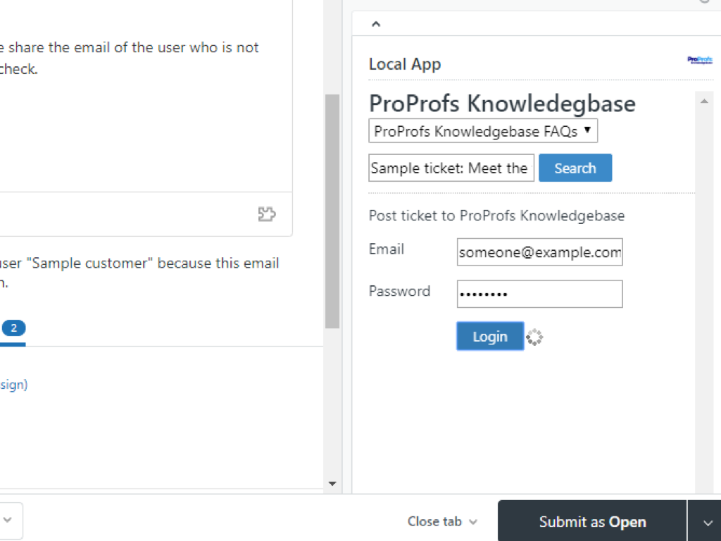 Use Case Zendesk and ProProfs is a powerful combination that can help you deliver delightful experiences to your customers. Your agents can use the ProProfs Knowledge Base app to resolve tickets on Zendesk. The app eliminates the need to open various articles for ticket resolution. It saves time by helping your agents find the right knowledge Base article link, and paste it in the ticket. Accessing knowledge is a breeze with the ProProfs Knowledge Base app.