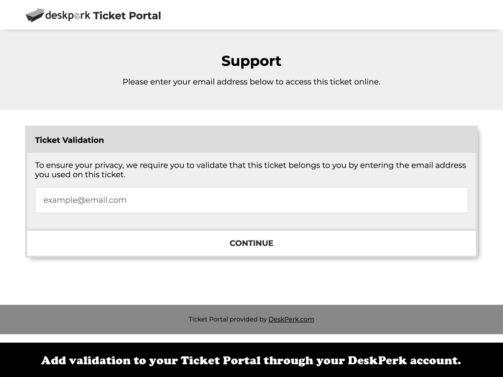 For an extra layer of security, you can enable validation on your Ticket Portal. This requires the requester to enter their email address before accessing the ticket online. (Exclusive)