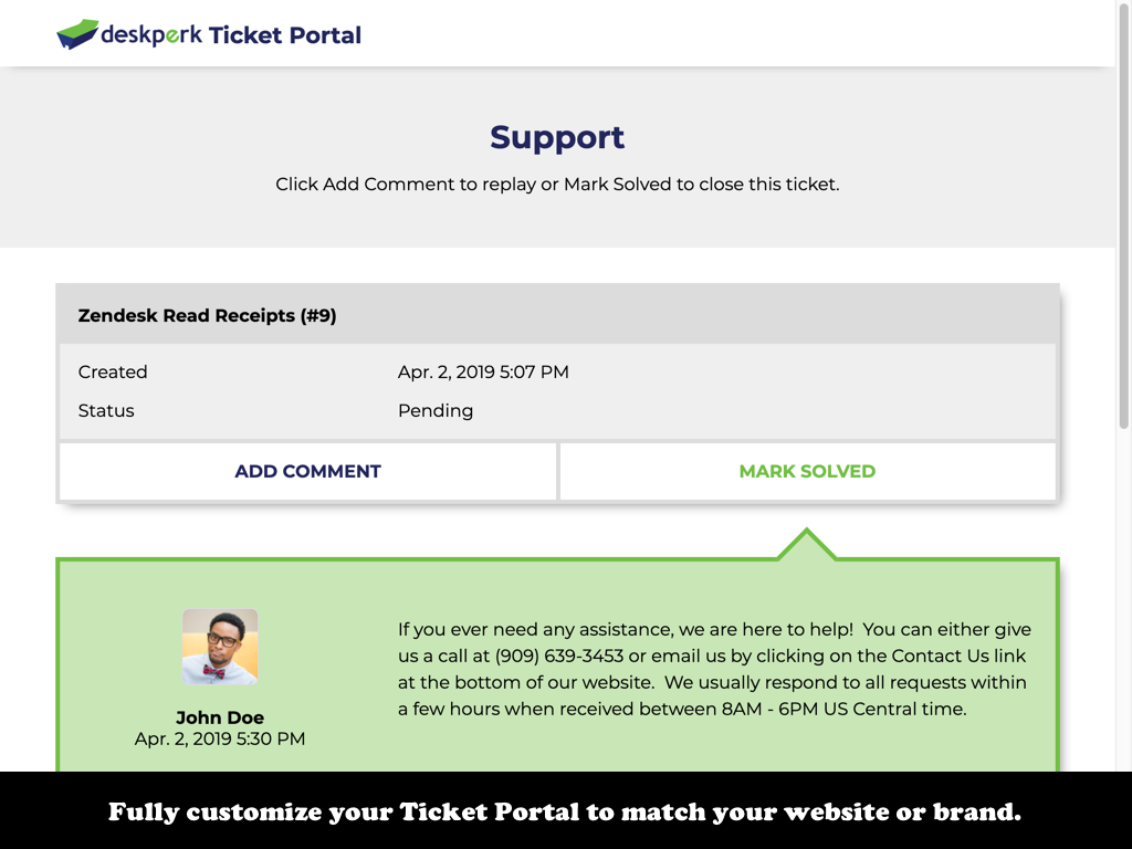 Make your Ticket Portal your own. You can fully customize everything to match your companies brand. (Exclusive)