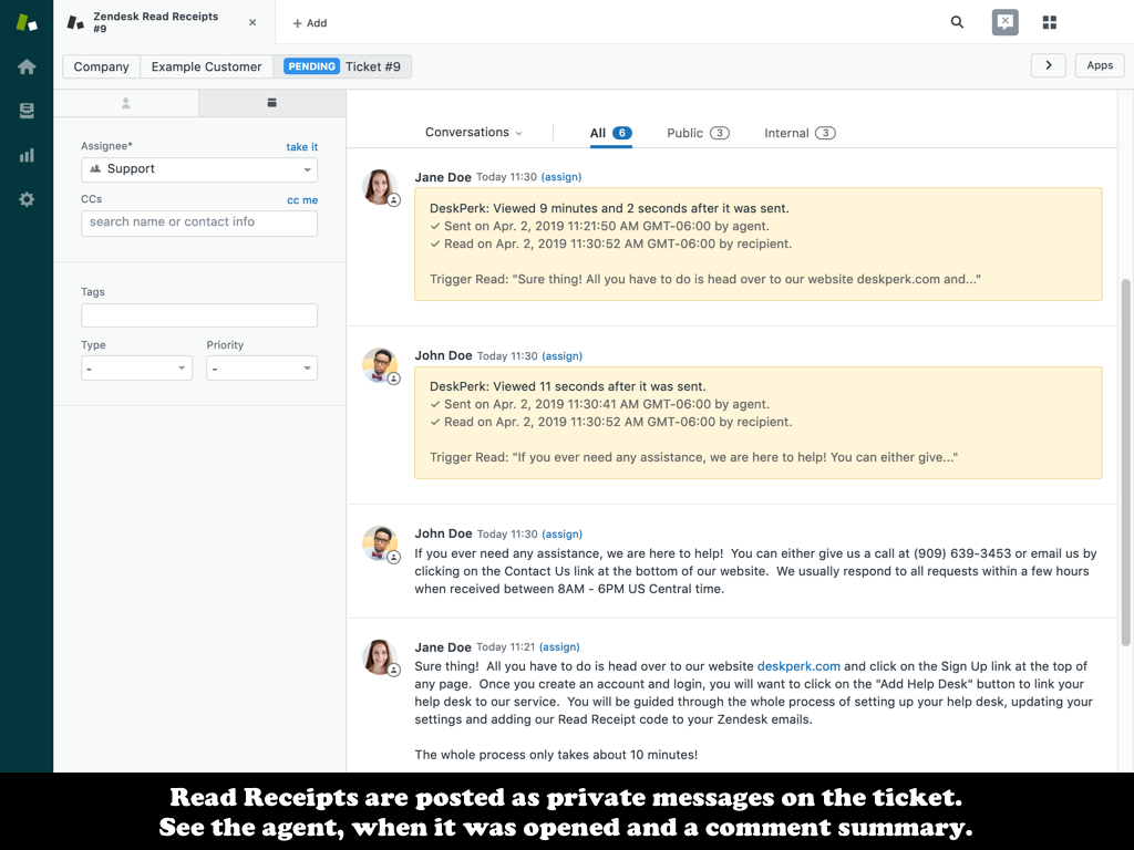 With DeskPerk Read Receipts, there’s nothing to download or install. To start using our Read Receipts within your Zendesk Support account visit DeskPerk.com and sign up for a free trial (no credit card required).