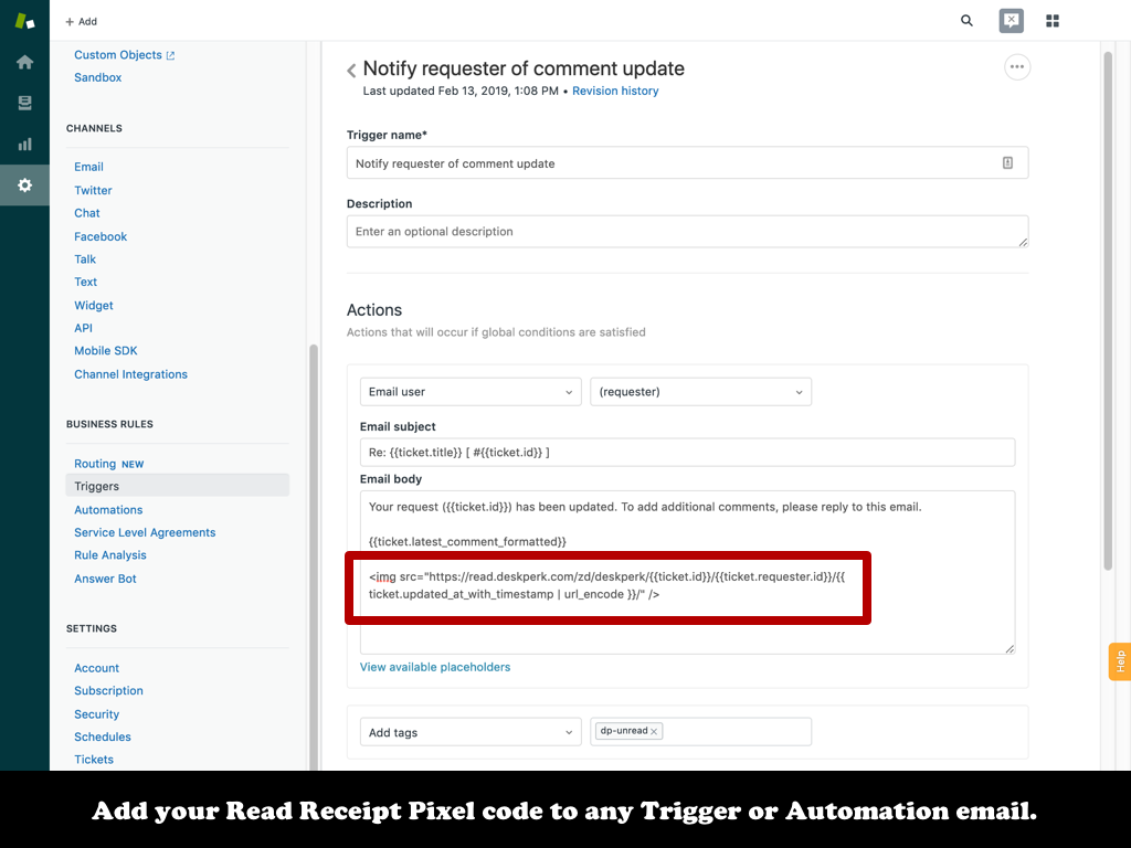 - Zendesk Read Receipts - Know when emails to customers are opened