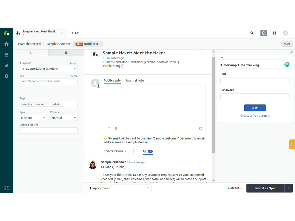 After installation, use your TimeCamp credentials to login and start tracking time-consumption of your tickets!