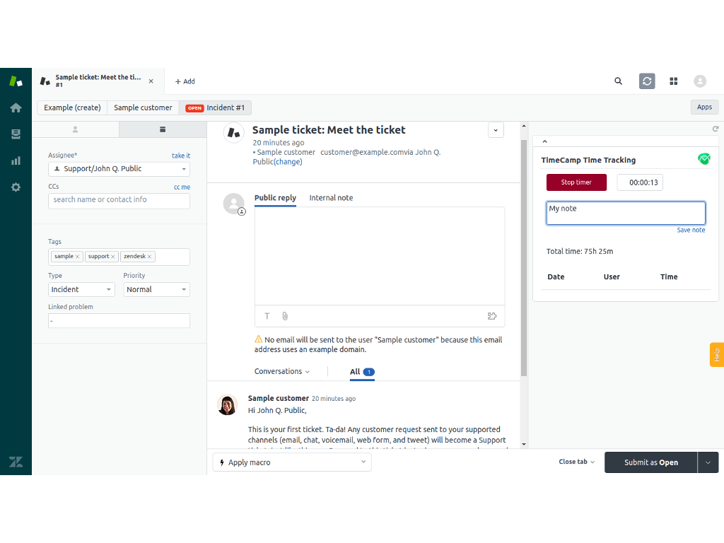 Helps you track time spent on tickets.