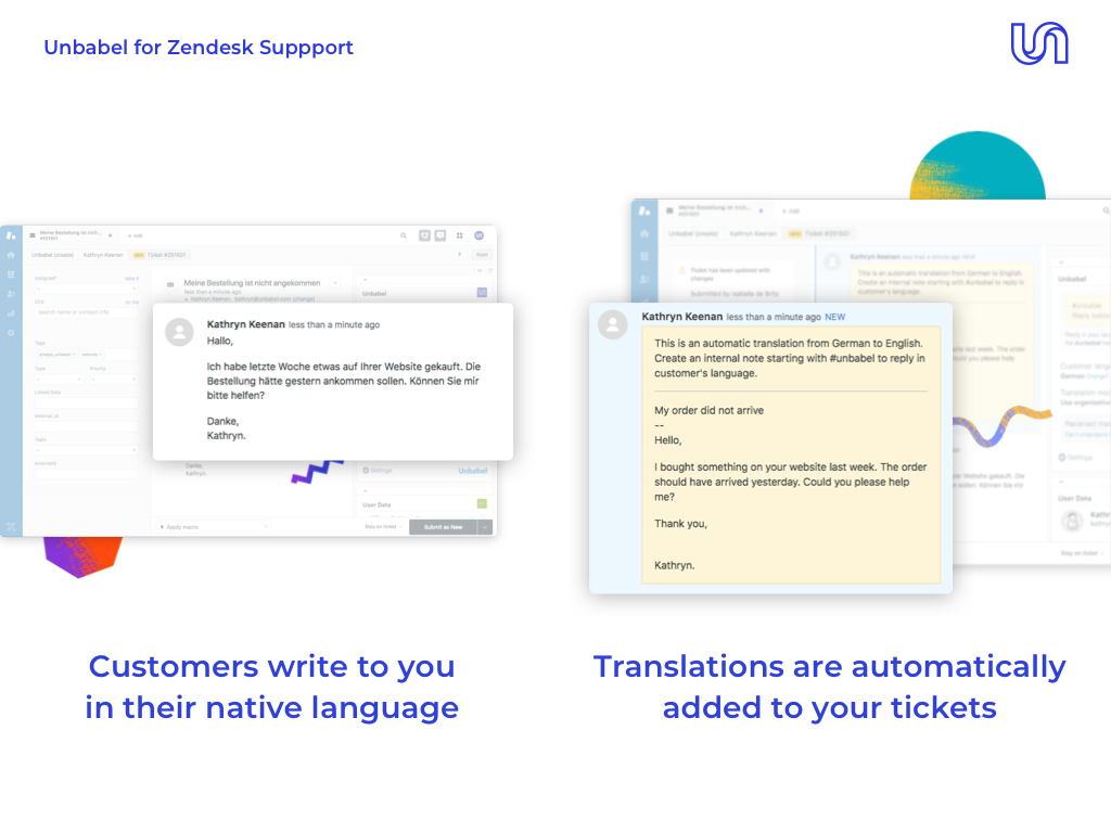 Powered by state-of-the-art AI and a worldwide community of translators, Unbabel delivers translation at enterprise scale. We help you serve customers in any language, with fast, native-quality translations of your customer support tickets in Zendesk.