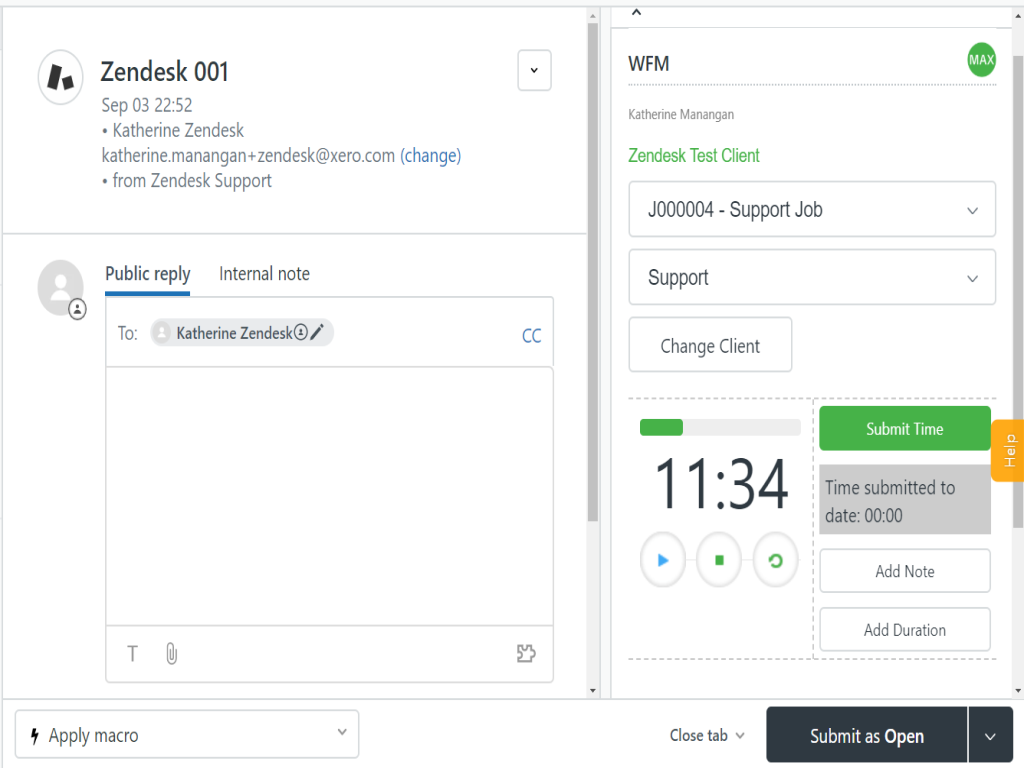 Note: Your WorkflowMax email address must be the same as your Zendesk email address for the app to work.