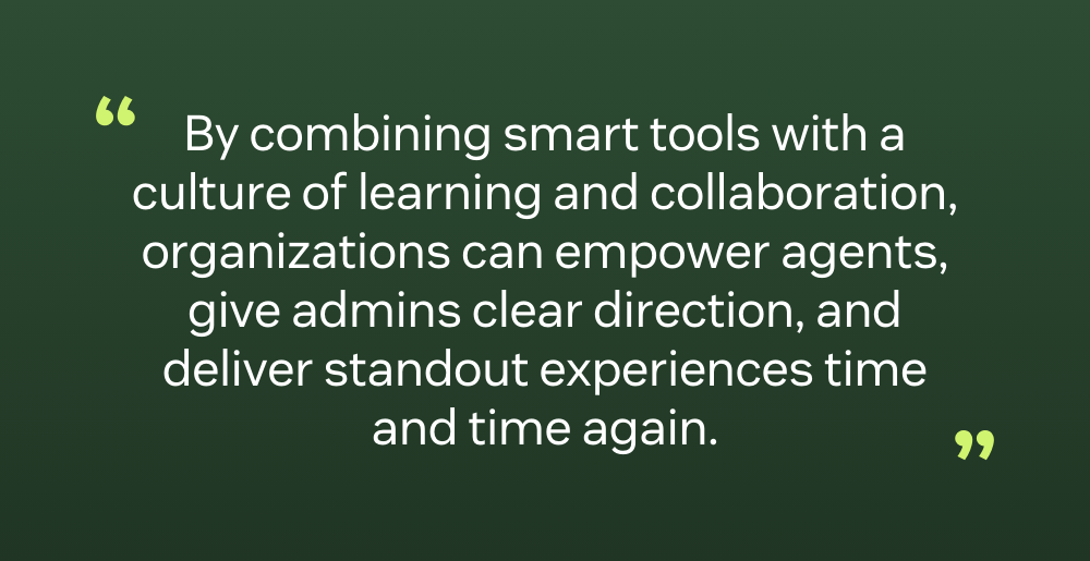 The real magic happens when AI and people work in sync. By combining smart tools with a culture of learning and collaboration, organizations can empower agents, give admins clear direction, and deliver standout experiences—time and time again.