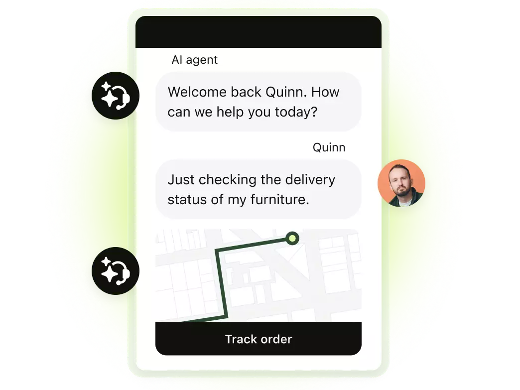 AI agents manage requests across email, chat and portals – tracking orders, resolving service needs and escalating urgent issues automatically