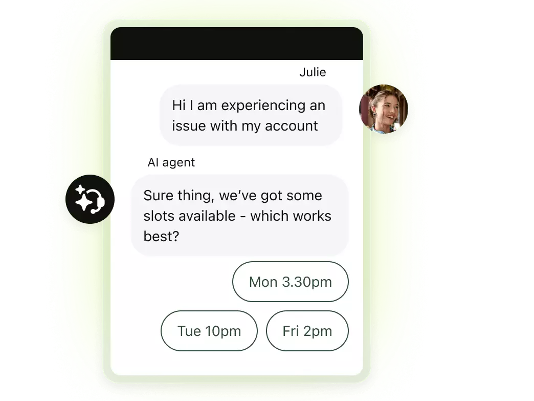 Instantly handle routine questions—like account updates or policy info—freeing your agents to handle complex, high-value conversations.