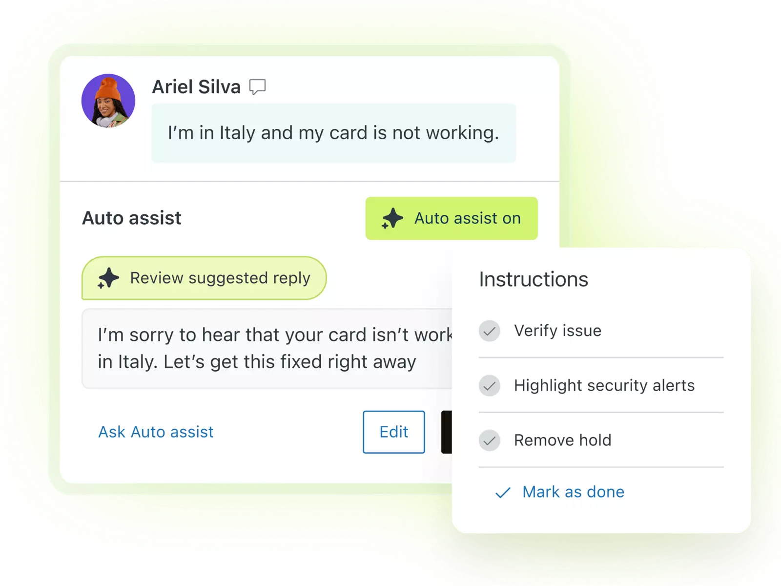 Copilot guides agents with customer context, suggested replies, and a tone tuned for empathy and professionalism that’s critical in financial interactions.