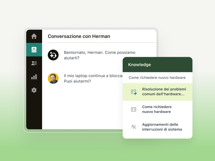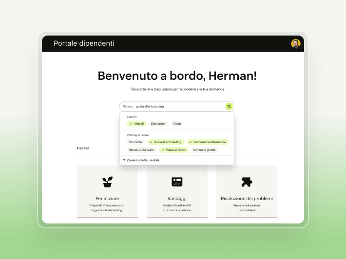 Offri un'assistenza migliore ai tuoi team. Queste demo mostrano come Zendesk semplifica l'assistenza interna per HR, IT e non solo, con i flussi di lavoro di Zendesk AI.
