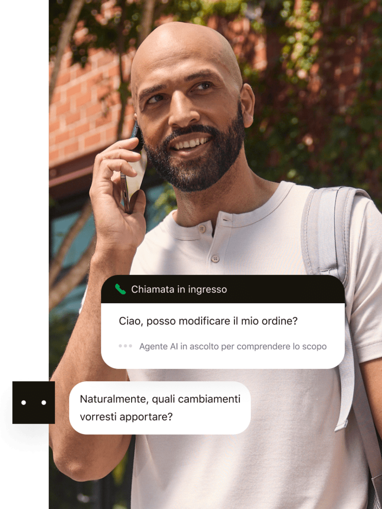 Utilizza agenti AI per rispondere alle chiamate. Grazie a un linguaggio naturale e adattabile per fornire assistenza ai clienti, gli agenti AI sono in grado di risolvere interazioni complesse e di reindirizzare i clienti a un agente umano ove necessario.