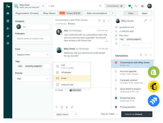 By automating follow-ups and check-ins for open tickets, Mailchimp saved a whopping 48,000 agent replies in a single year. The team also relies on triggers and more than 1,000 macros to help keep customer response times short. The team’s full resolution time for email is, on average, 24 hours and just over 26 minutes for live chats.