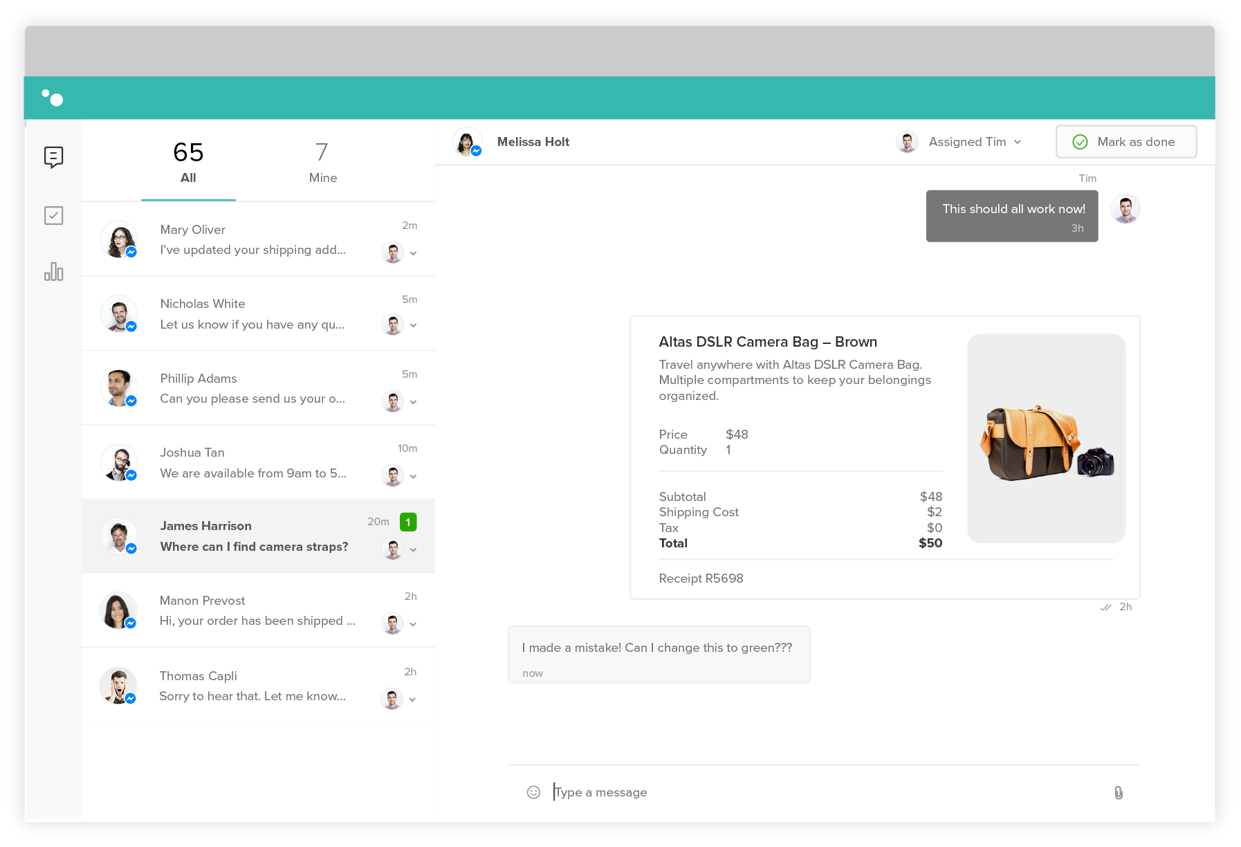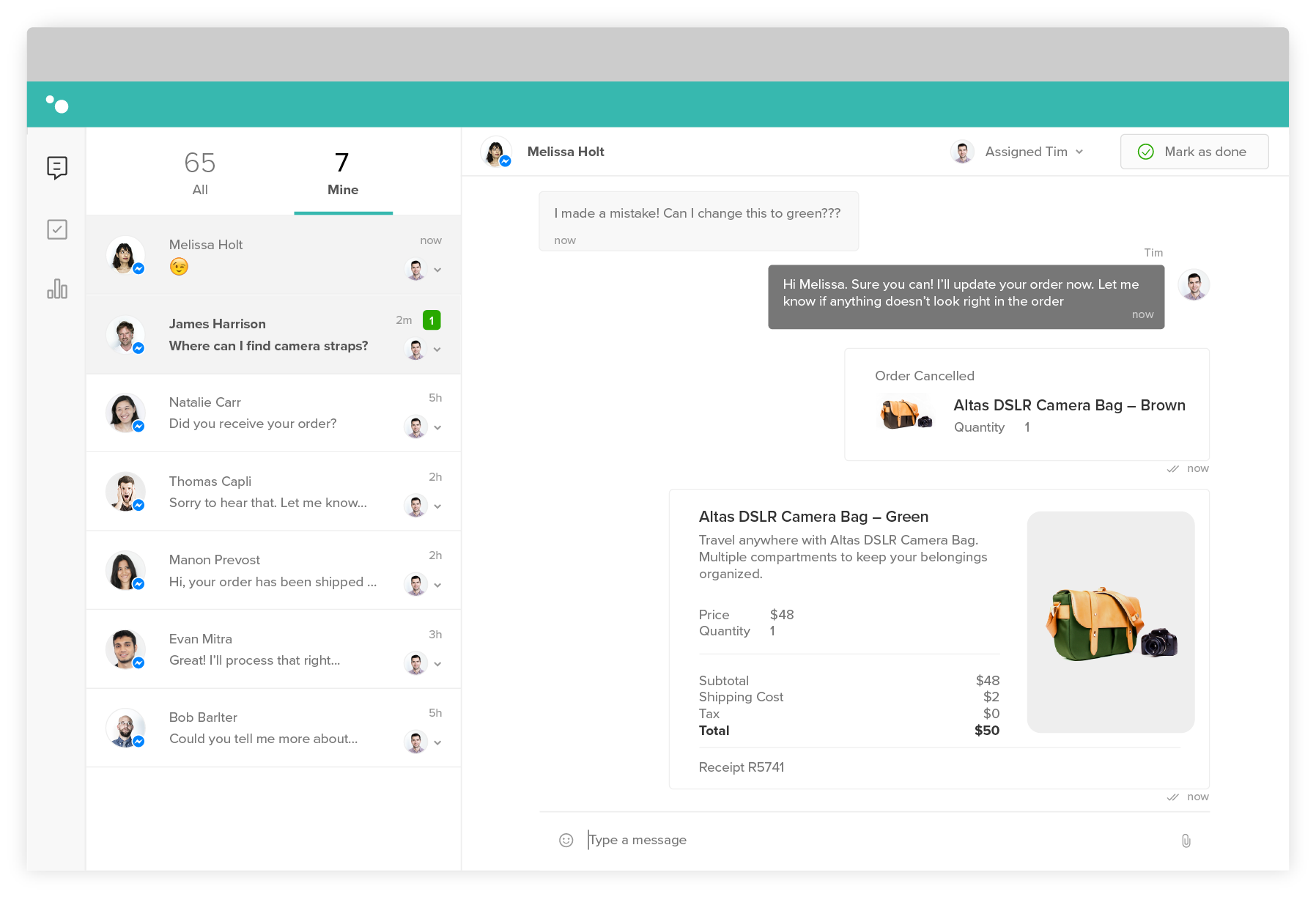 Customers can now have a real-time conversation with a business on Facebook Messenger and keep their order history in one place