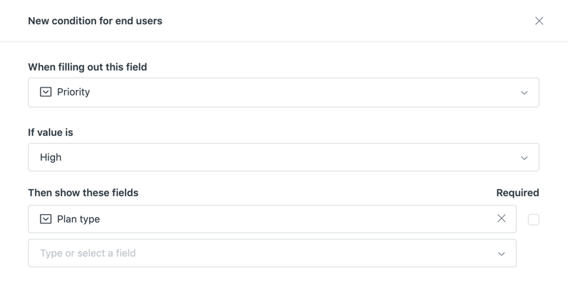With conditional ticket fields, only the fields that you want agents and end users to see appear in ticket forms. Initially, only a few fields appear in the form. As the user fills in their answers, the form progressively adds sub-fields based on the users’ answers. This helps you collect more granular and relevant information about their problem or request.